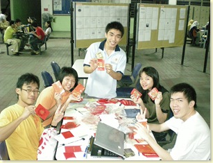 The committees that were responsible for the making of Ang Pow were Grace, Huey Ee and me. Well, there was no way that I would be able to finish the job with out the help from others. Picture above showed the assistance giving by other committees member. It was enjoyable working along with friends in organising this event.