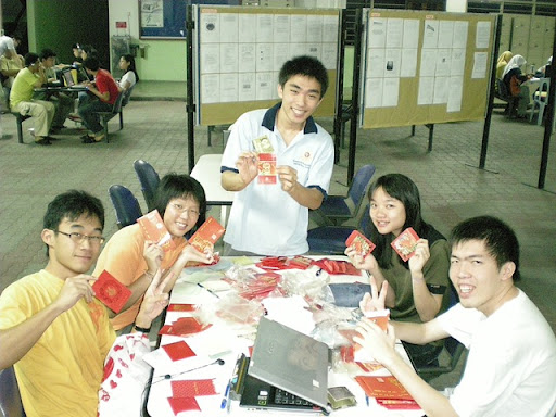 The committees that were responsible for the making of Ang Pow were Grace, Huey Ee and me. Well, there was no way that I would be able to finish the job with out the help from others. Picture above showed the assistance giving by other committees member. It was enjoyable working along with friends in organising this event.